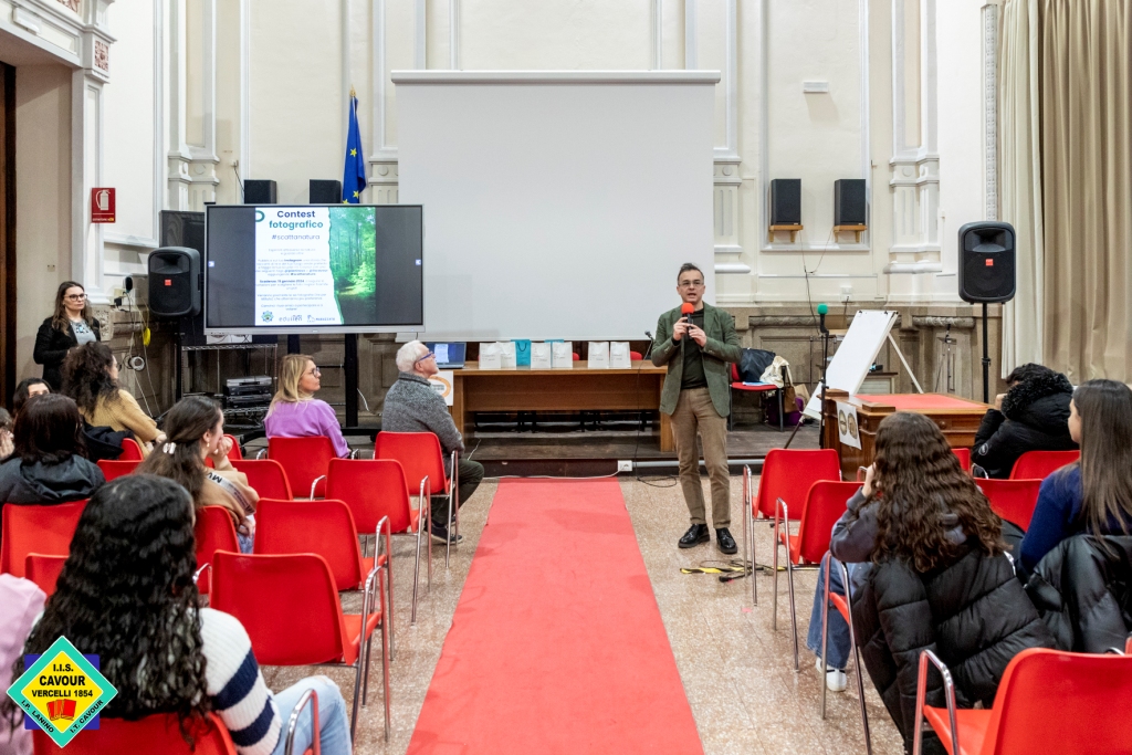 Aria di festa, voglia di esprimersi in libertà, vociare di studenti e studentesse in Aula Magna del I.I.S. Cavour nella mattinata di lunedì 26 febbraio per la premiazione del contest fotografico #scattanatura.
