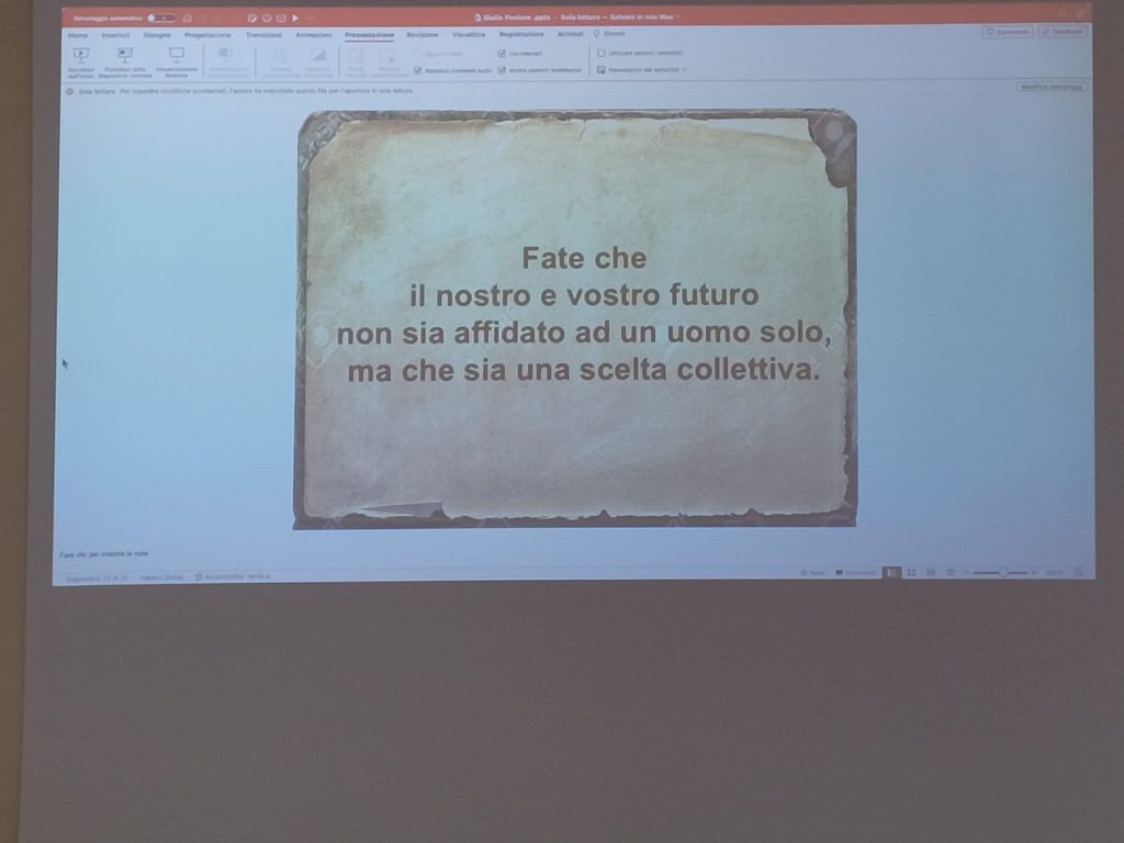 Un ringraziamento particolare va alla nipote dell’On.le Pastore, Signora Maria Rosa Dolera, anch’essa presente alla cerimonia, che ha messo a disposizione dei ragazzi del materiale inedito di famiglia, che è servito per la realizzazione dell’emozionante elaborato.