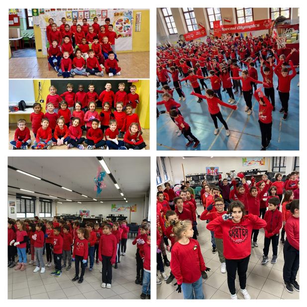 Tutti hanno indossato una maglietta rossa e guanti colorati, un’intera comunità scolastica coinvolta.