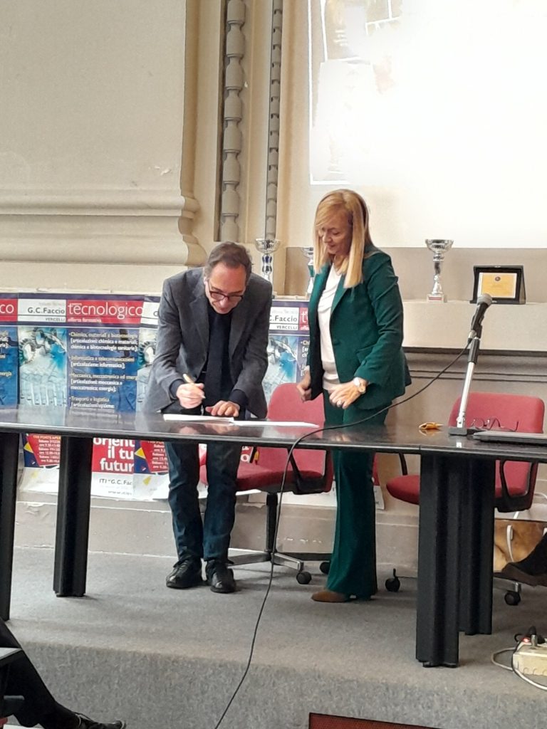 Infine, dopo un intervento del dott. Giuseppe Caruso, esperto in medicina aerospaziale e aeronautica, certificatore di piloti e ufficiali che fanno attività di volo, la parola è passata al professor Paolo Maggiore del Politecnico di Torino, il quale ha firmato con la dirigente professoressa Aliberti, un importante accordo di collaborazione tra l’Istituto Faccio e il Politecnico.