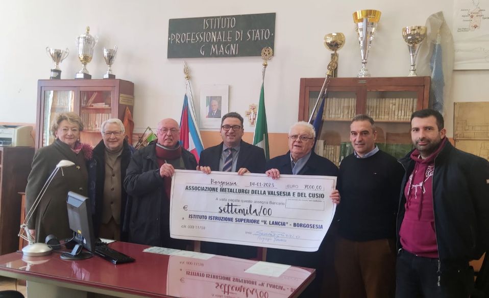 Ai “meccanici” dell’istituto Lancia una donazione di 7mila euro dall’associazione Metallurgi della Valsesia e del Cusio.