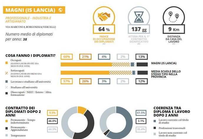 E i dati premiano la scuola di Borgosesia con i due plessi, Istituto tecnico Lirelli e Istituto professionale Magni ai vertici nella provincia di Vercelli.