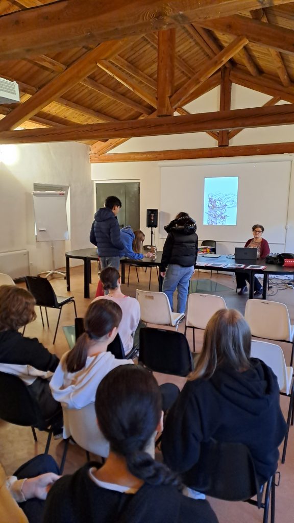 La classe, anche attraverso il gioco e le schede fornite per sviluppare ragionamenti di gruppo, ha colto gli spunti creativi della mostra volta ad attivare una rigenerazione intellettuale.