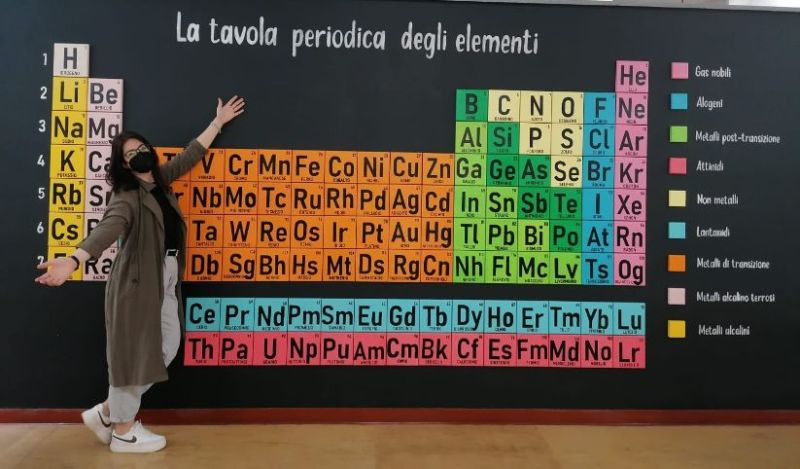 Da un paio di settimane la parete all’ingresso è stata rinnovata e abbellita con la rappresentazione della tavola periodica degli elementi.
