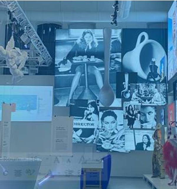 Al secondo piano dell’edificio si trova L’Atelier dove sono illustrate le collaborazioni creative dell’Azienda.