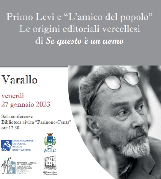 Le origini editoriali vercellesi di “Se questo è un uomo”, che si terrà nella Sala conferenze della Biblioteca civica “Farinone Centa” di Varallo, venerdì 27 gennaio 2023, alle ore 17.30.