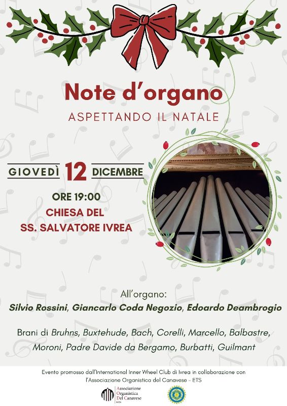 Dopo il successo dello scorso anno, si terrà giovedì 12 dicembre alle ore 19, presso la chiesa del SS. Salvatore a Ivrea, il concerto dal titolo “Note d’organo aspettando il Natale”.