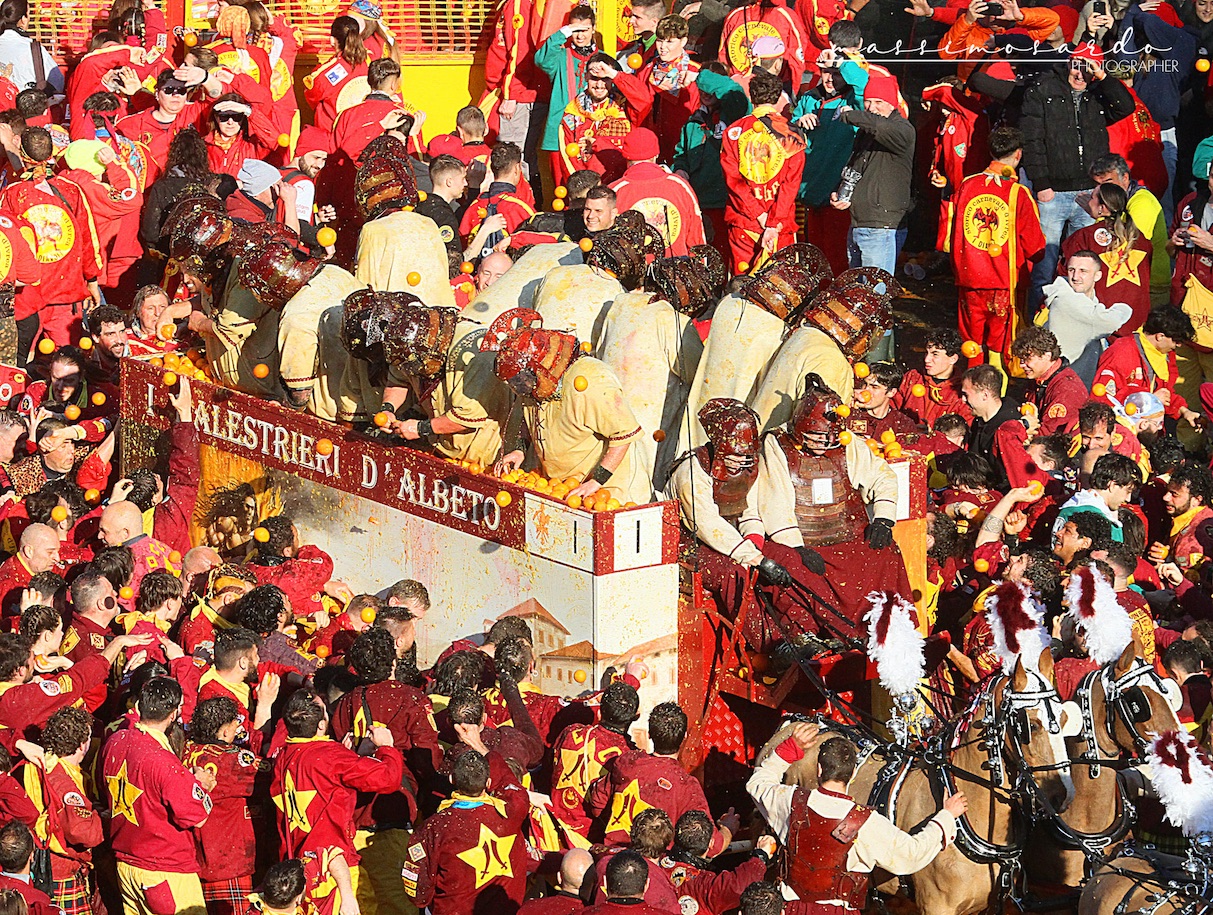 “Il bilancio della giornata è decisamente positivo – commenta Davide Marchegiano -. Il Corteo ha sfilato bene ed è stato accolto con calore e compostezza. Non si sono verificati episodi particolari. Gli aranceri hanno combattuto per quasi tre ore nel tiepido pomeriggio. Gli Abbà hanno mostrato entusiasmo e partecipazione, così come tutti i Personaggi del Carnevale, confermando ancora una volta che questa è una festa del popolo, per il popolo, con il popolo: un evento unico al mondo. A nome della Fondazione, desidero ringraziare la Polizia Municipale per la disponibilità e la sensibilità dimostrate nella gestione di un momento critico, permettendo la regolare prosecuzione del Corteo. Ringrazio anche i Gruppi ospiti che hanno arricchito la nostra giornata”.