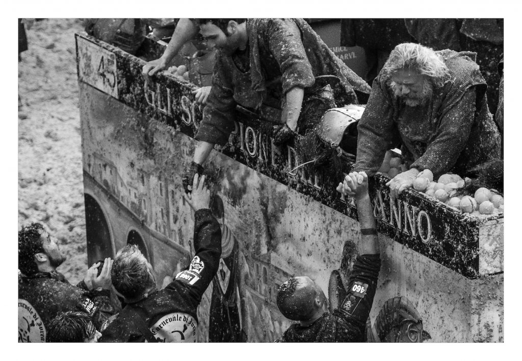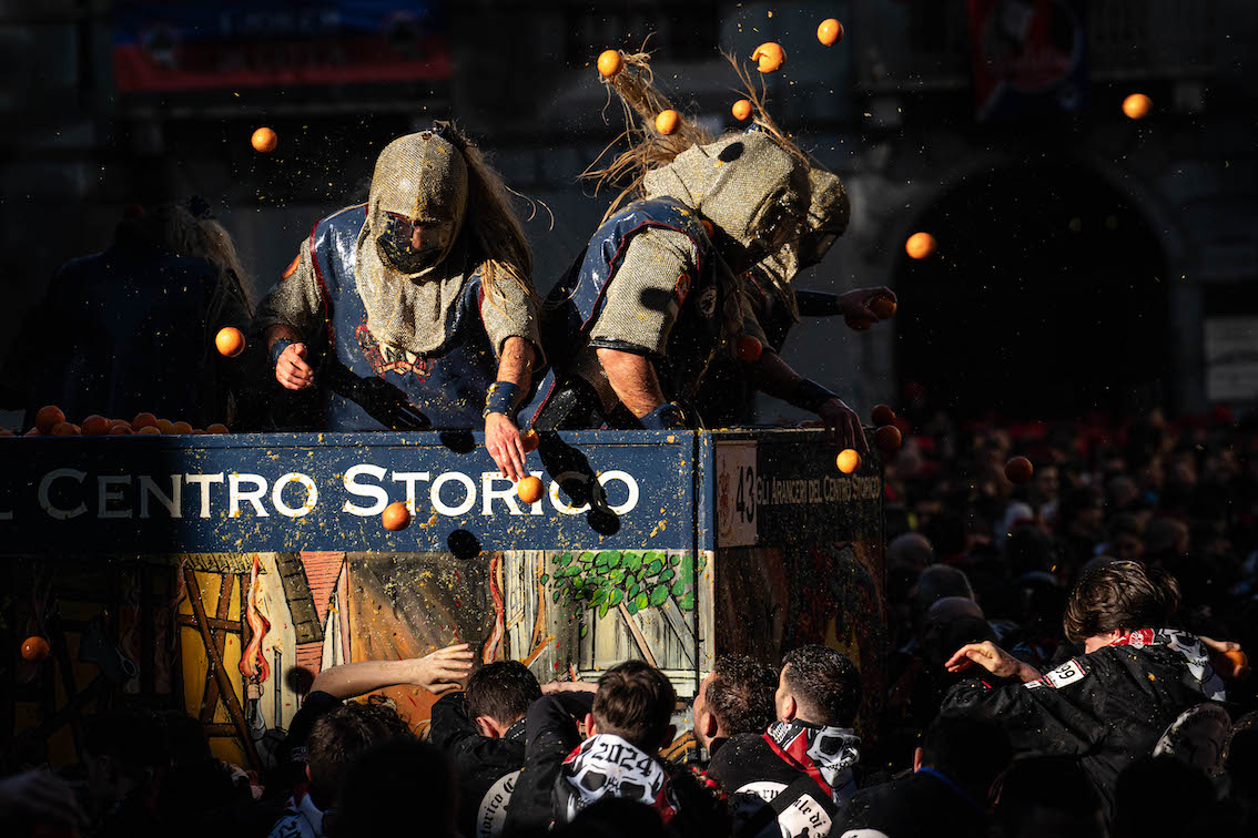 Il culmine della giornata si avrà, nel pomeriggio, con la prima Battaglia delle Arance, uno degli eventi più suggestivi del Carnevale che suscita l’ammirazione del mondo intero per il carico di valori che porta con sè oltre alla sua spettacolarità.