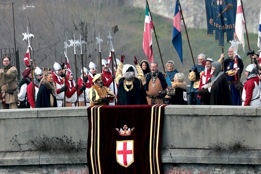 Il Magnifico Podestà, accompagnato dal suo seguito e dai Credendari, si dirigerà in piazza Castello per il solenne giuramento di fedeltà agli Statuti del Carnevale, alla presenza del Corteo Storico.