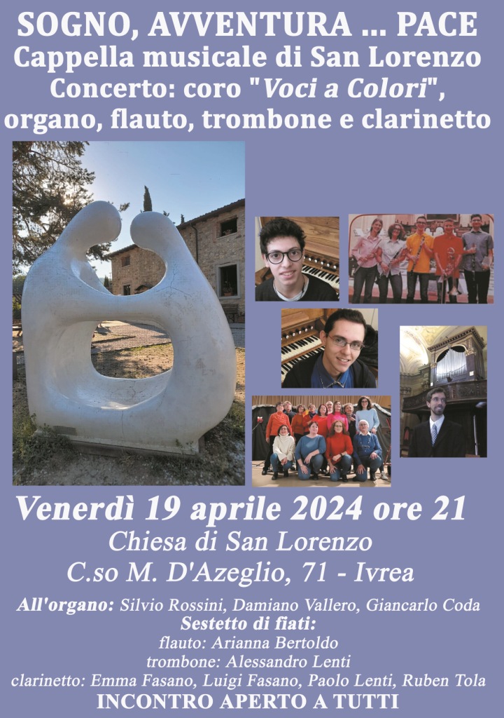 Venerdì 19 aprile, alle ore 21, i musicisti e i cantori della Cappella Musicale di San Lorenzo tornano a esibirsi in occasione del tradizionale concerto di primavera, quest’anno intitolato “Sogno, avventura… Pace”.