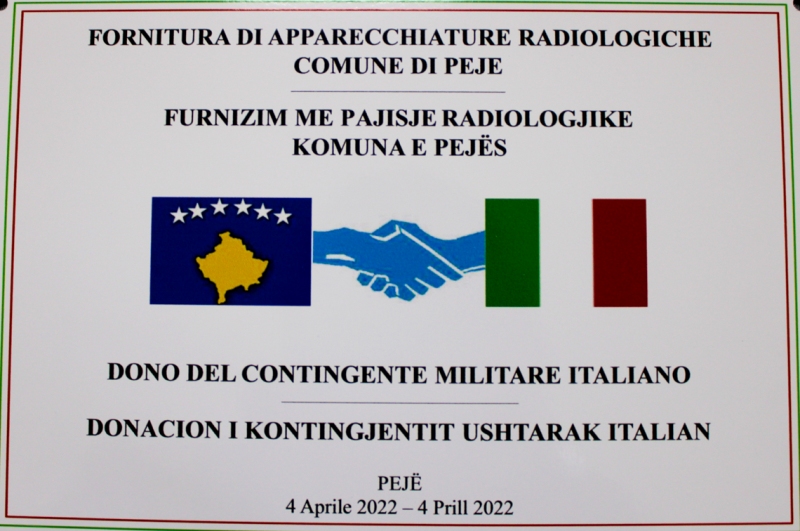 Lo scorso 4 aprile 2022 si è concluso un progetto di Cooperazione Civile e Militare (CIMIC) che ha visto i soldati italiani del Regional Command West (RC-W), impegnati nell’ambito della missione in Kosovo denominata Joint Entrerprise, effettuare una donazione di apparecchiature radiologiche odontoiatriche a favore del centro di medicina della città di Pejë.