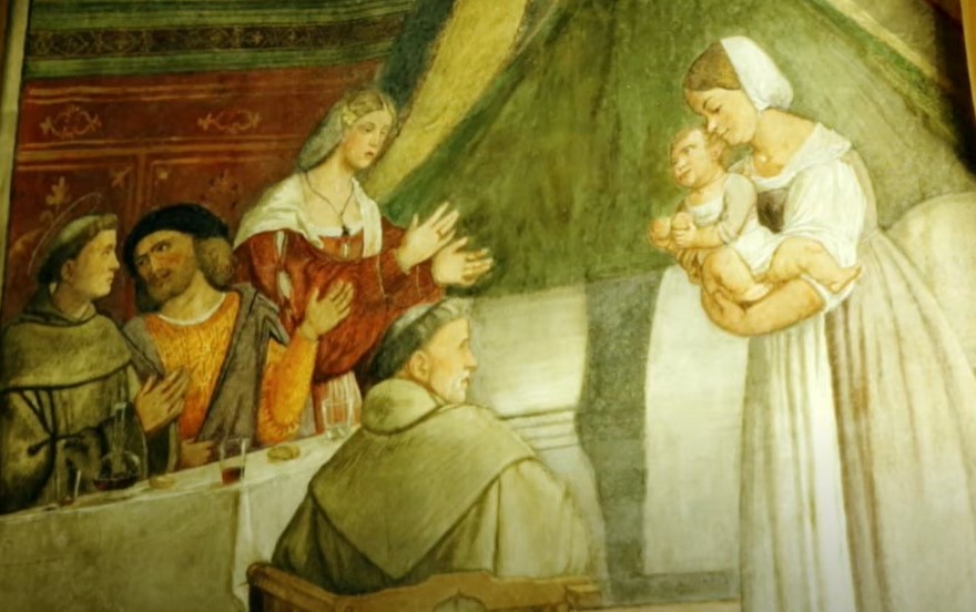 Trovato il figlio senza vita, la madre non si rassegnò, ma si affidò a Sant’Antonio e fece voto di distribuire ai poveri tanto grano quanto era il peso del bambino, se fosse ritornato in vita.
