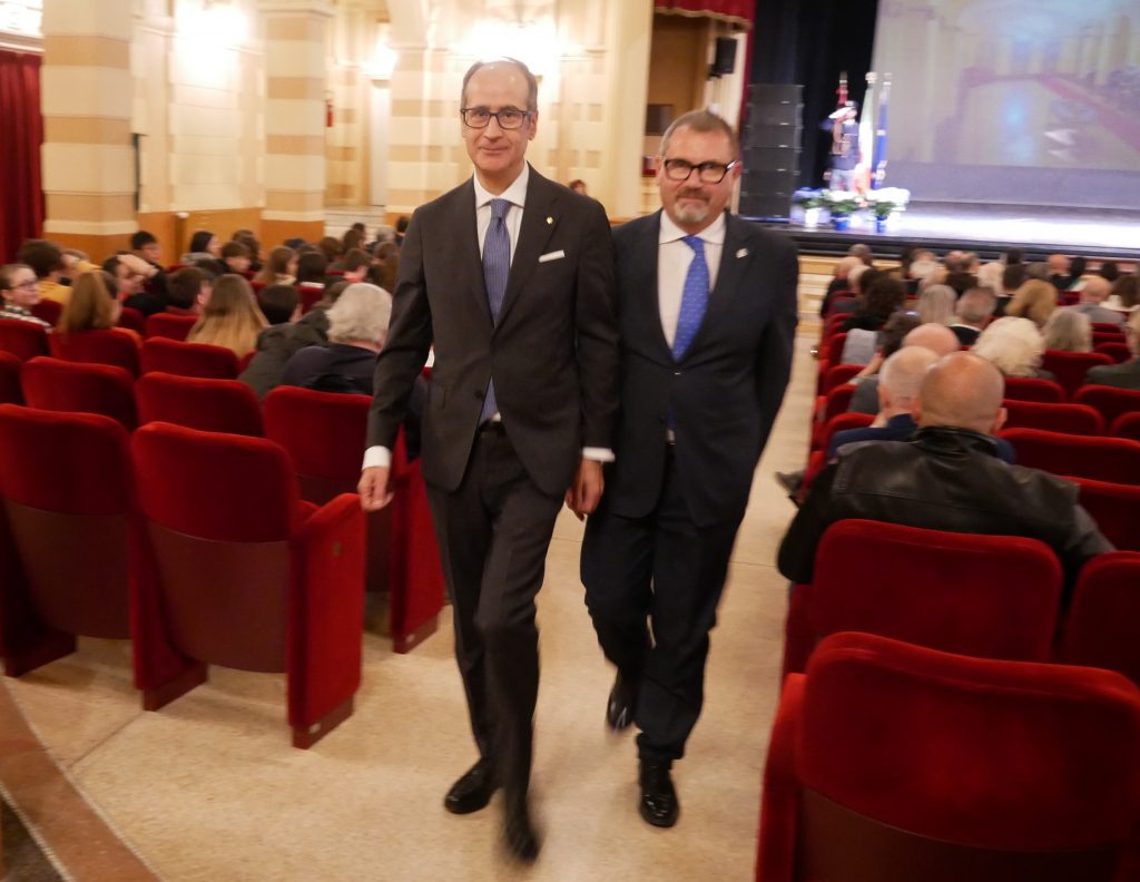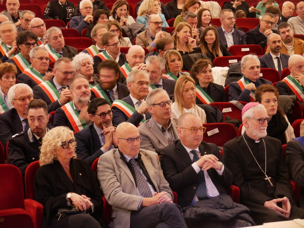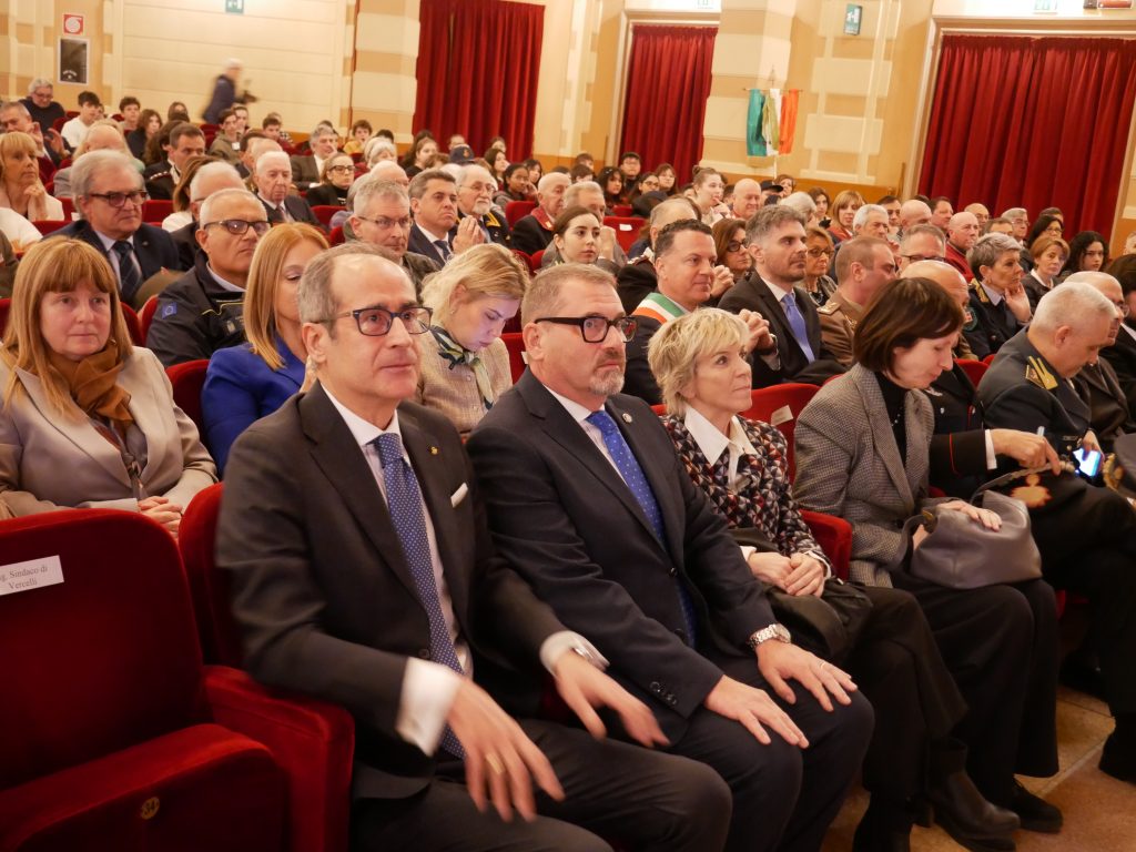 Un pensiero che i presenti – tante Autorità, come di consueto, ma molti anche i giovani e gli studenti – dimostrano di apprezzare particolarmente: soprattutto, un pensiero che subito favorisce un’atmosfera di partecipazione davvero cordiale, per un ascolto ancora più attento dei molti messaggi che le parole del Questore mandano.