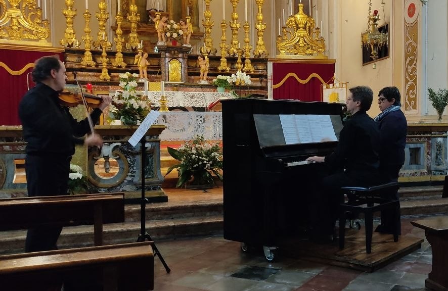 E subito dopo la celeberrima “Follia” (o “Folia”) di Corelli, una serie di variazioni su un tema antico e misterioso, in cui melodie penetranti si alternano ad ardite figurazioni violinistiche, ampie meditazioni, impetuosi torrenti di note, in un serrato dialogo con il basso continuo (al pianoforte, Federico Villani, direttore artistico della rassegna).
