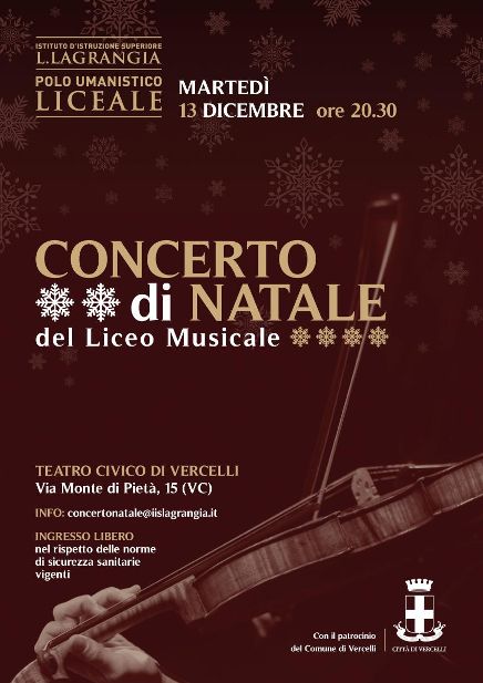 Martedì 13 dicembre 2022: si torna al Concerto di Natale del Liceo Musicale “Lagrangia” nella cornice del Teatro Civico vercellese… e questa volta senza mascherine né particolari norme anti-Covid.