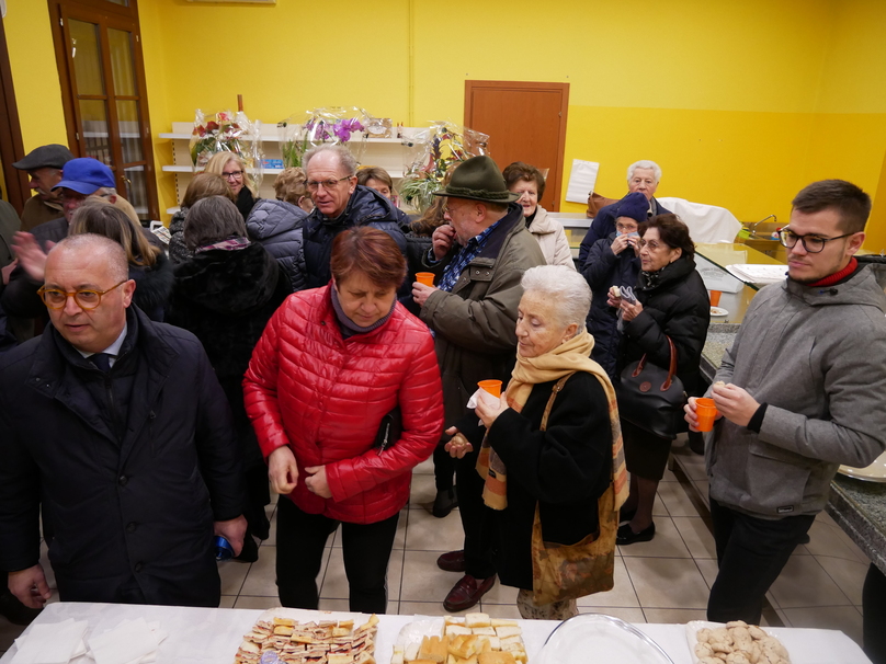 Ad incoraggiare il lavoro che ha portato ad una nuova vetrina illuminata il Presidente provinciale di Ascom, Angelo Santarella, il Sindaco Emilio Chiocchetti; ha impartito la benedizione all’attività, agli esercenti ed anche ai futuri clienti (aperto tutti i giorni, da lunedì a sabato) il Parroco Don Gian Mario Isacco.