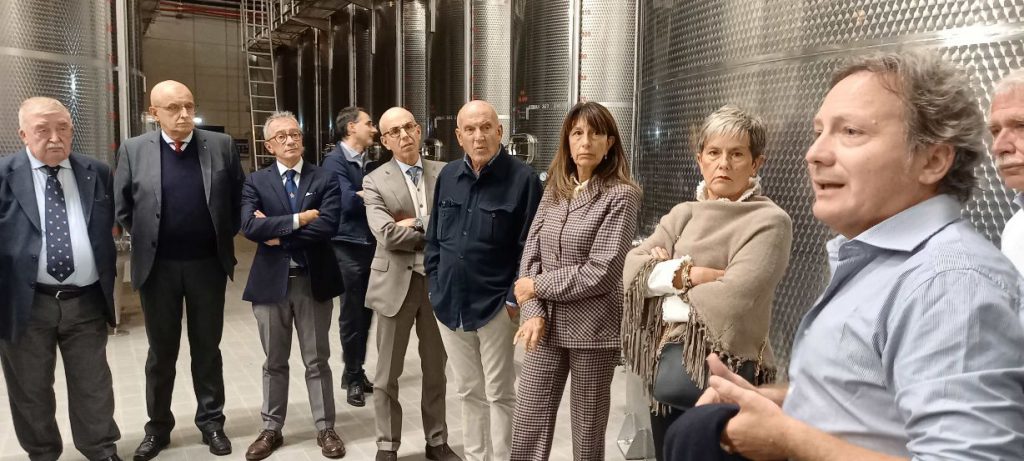 Per i soci Lions era stata organizzata una interessante visita guidata alle cantine, dove è stato possibile seguire tutte le fasi della vinificazione, dall’arrivo dei grappoli dalle vigne, fino al vino riposto nelle botti per l’invecchiamento, al modernissimo reparto dove avviene l’imbottigliamento: “Per il 2023 si prevede di superare il mezzo milione di bottiglie. Si imbottiglia con i tradizionali tappi di sughero, ma anche con innovativi tappi a vite, riciclabili, con membrana per far respirare il vino”.