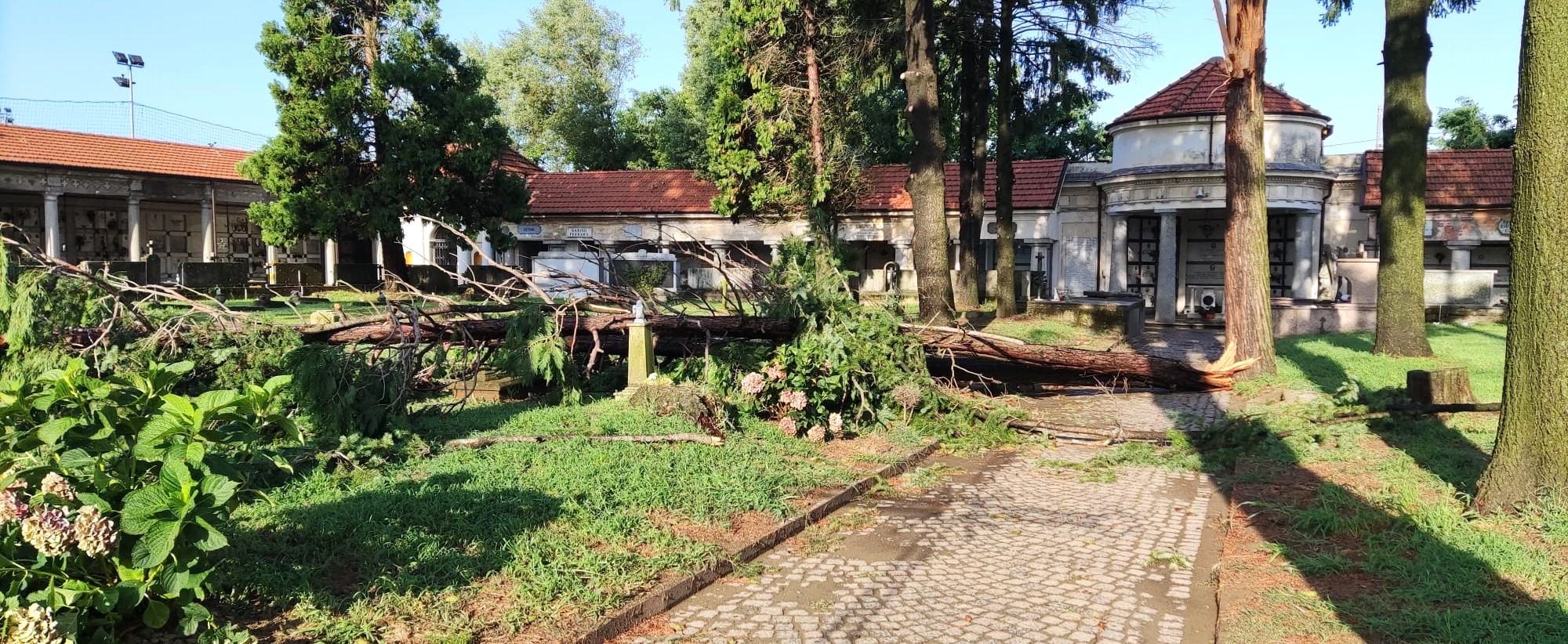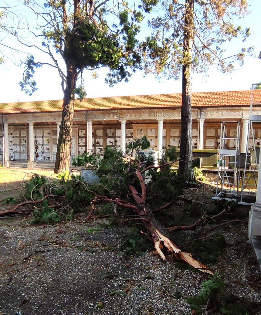 In particolare nel compendio del Cimitero risulta siano al suolo varie piante di alto fusto per le quali, peraltro, il Comune aveva già, nei primi giorni di luglio, deciso l’abbattimento cautelativo.