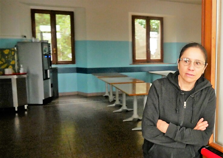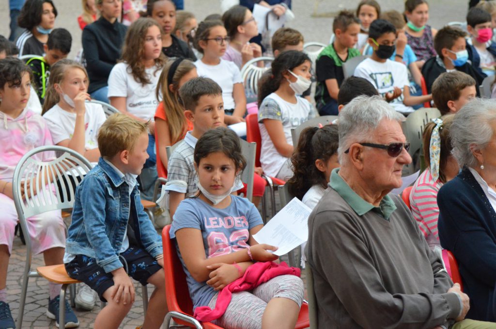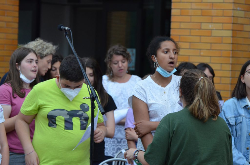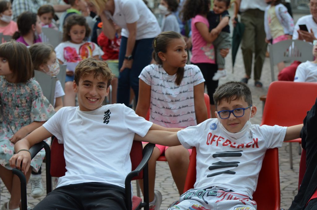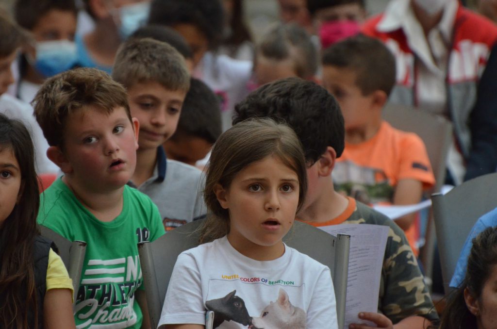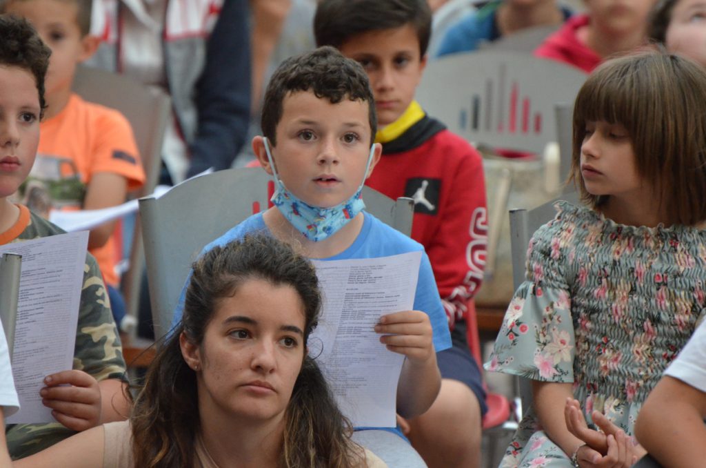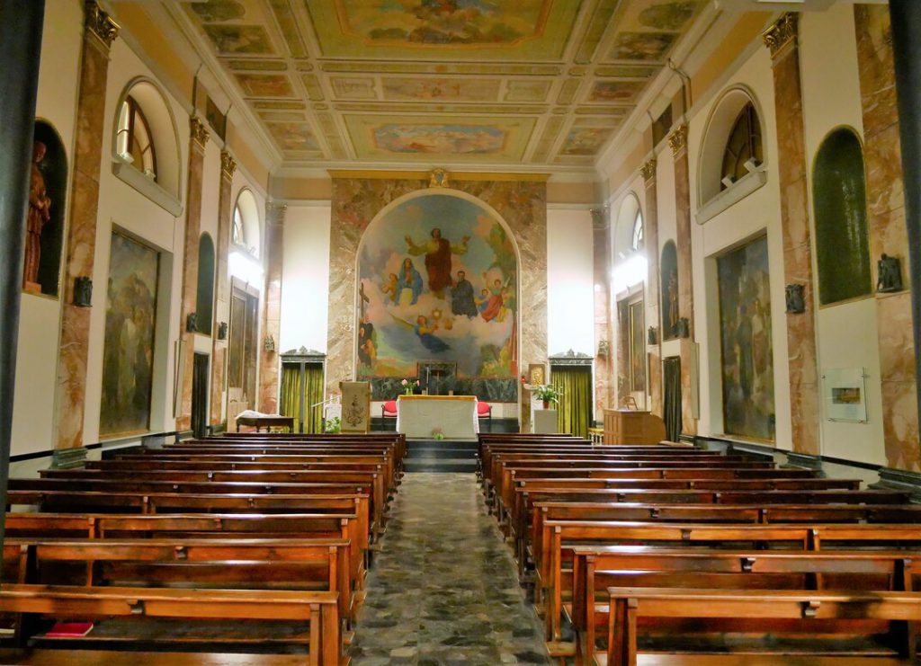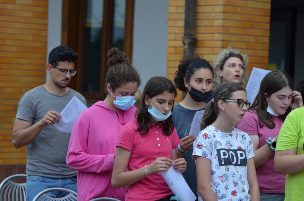 In pochi minuti (anche questo “esodo”, nel filmato) tutti i presenti hanno trasferito sedie, altare, Crocifisso, effige di Maria Ausiliatrice, sotto l’ampio ed accogliente porticato. Tutto: chitarre ed amplificatori compresi, i ferri del mestiere di una corale davvero bravissima che ha animato la liturgia.