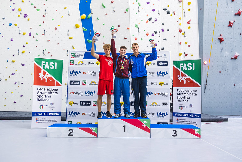 La Coppa Italia Giovanile Assoluta vede sul podio Ludovico Borghi (Istrice Ravenna), vicecampione italiano U18, secondo Samuele Graziani (On Sight SSD), campione italiano U18 e terzo Francesco Ponzinibio (Equilibrium Soc. Coop), Campione del Mondo U16 e Campione Europeo Giovanile a Duisburg.