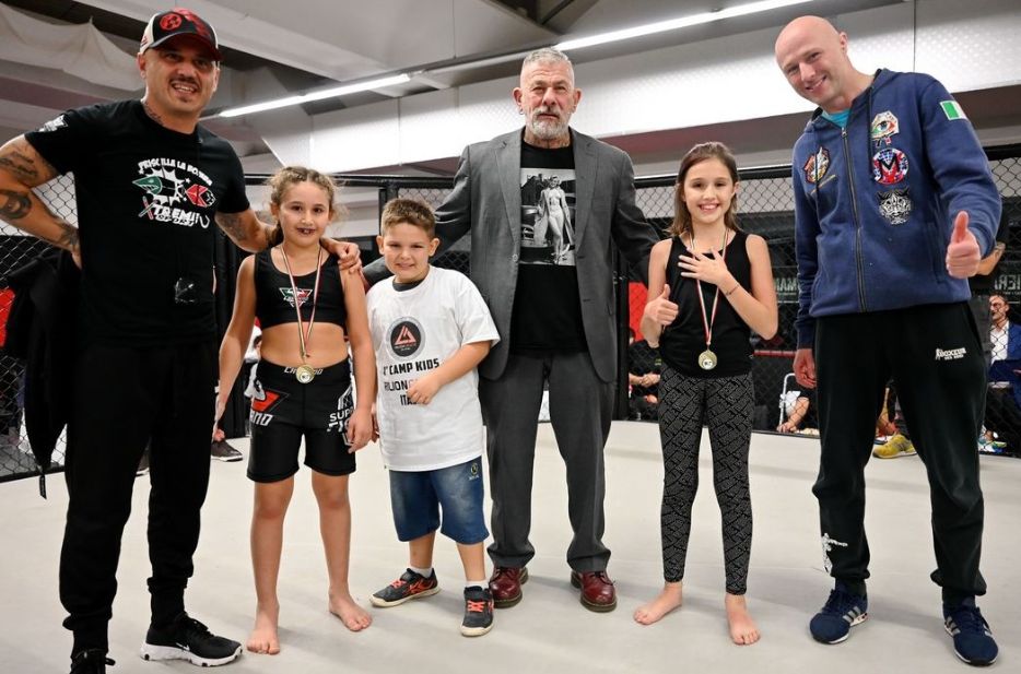 Il Coach Basilo Tazio ha poi accompagnato anche la piccola Micheli Viola, 10 anni, per un match di lotta Grappling, da lei pareggiato con una sua coetanea tra gli applausi del pubblico che hanno apprezzato il buon livello tecnico di queste giovani promesse. Sia il Match di Niccolò che quello di Viola con l’evento completo sarà presto visibile liberamente sui canali twitch e youtube del noto streamer/youtuber biellese “haznoskilz”.