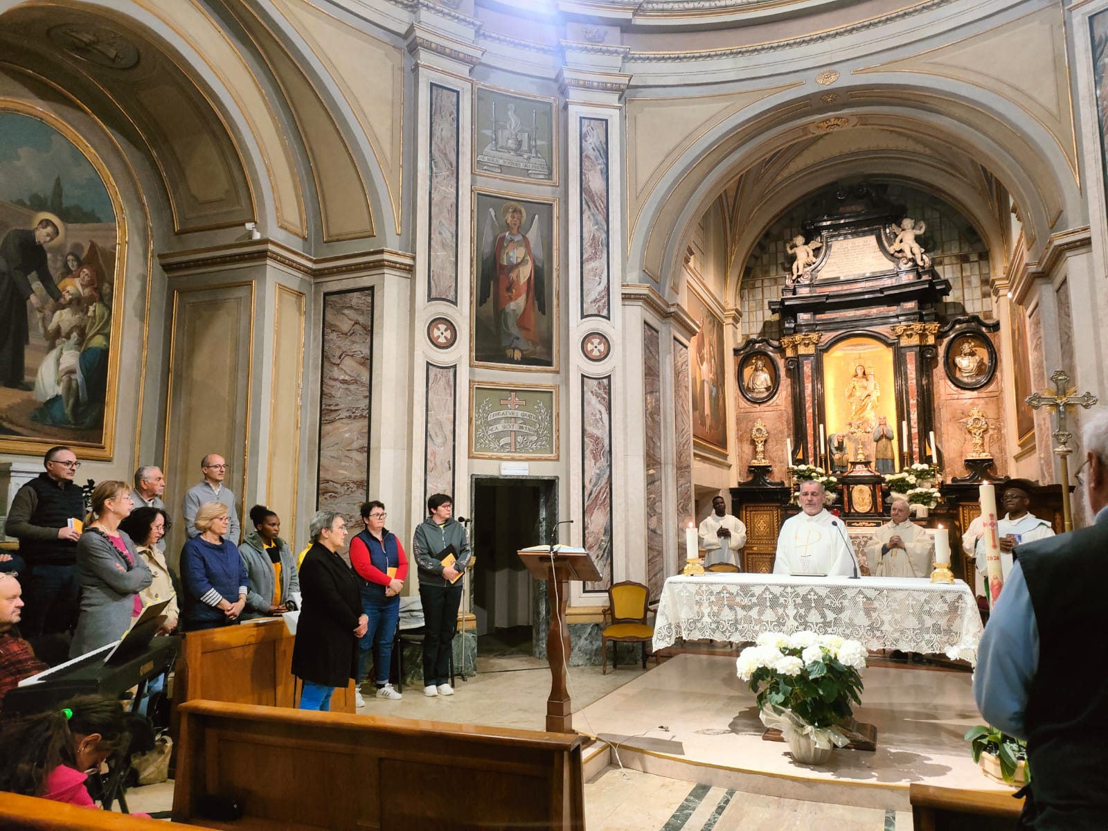 Presenti i diaconi Paolo Brun, Alessandro Masseroni e Jean Francois Nordjoe, quest’ultimo dei Silenziosi Operai della Croce, che il prossimo 25 aprile sarà ordinato sacerdote per l’imposizione delle mani del Cardinal Giuseppe Versaldi.