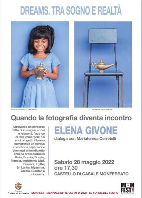 Alle ore 17,30, invece, Mariateresa Cerretelli converserà con Elena Givone sul tema Dreams. Tra sogno e realtà – Quando la fotografia diventa sogno. Attraverso un percorso fatto di immagini, suoni e racconti, l’autrice farà immergere i partecipanti nei suoi progetti: un corpus di immagini in continua espansione che negli ultimi diciotto anni ha preso forma in Italia, Bosnia, Brasile, Francia, Inghilterra, Mali, Burundi, Egitto, Sri Lanka, Myanmar, Grecia, Giordania e Ucraina.