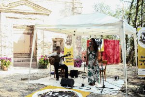 Nel pomeriggio un pezzo di Brasile è arrivato in Val Cerrina per un altro degli evergreen del Monfrà Jazz Fest: il concerto all’ eremo di Moncucco a Odalengo Grande che ha visto Sabrina Mogentale alla voce e Fabrizio Forte alla chitarra. Il duo ha proposto un viaggio virtuale nel paese sudamericano con più di una quindicina di melodie del mondo della Bossa Nova.  Prima della musica il sindaco di Odalengo Grande Fabio Olivero ha fatto notare al vasto pubblico, raccolto sotto gli alberi della radura, i notevoli progressi ai lavori di riqualificazione dell’Eremo, ormai un vero gioiello architettonico tra gli alberi ritornato letteralmente alla luce grazie anche al Monfrà Jazz Fest.