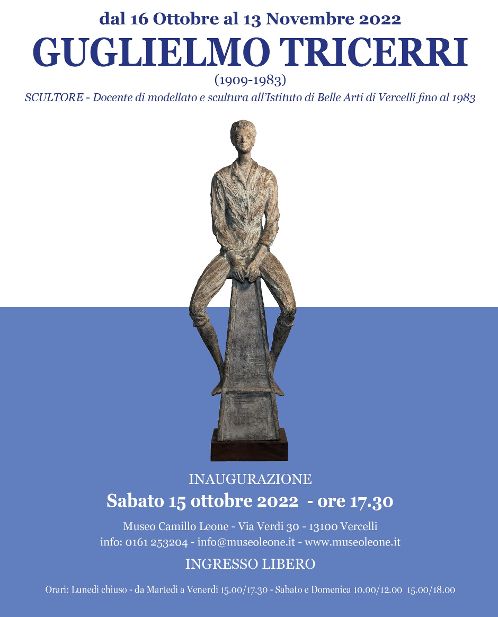 Sarà inaugurata sabato 15 ottobre alle ore 17.30 e poi visitabile fino a domenica 13 novembre presso la Sala d’Ercole del Museo Leone, la mostra dal titolo Guglielmo Tricerri Scultore. Docente di Modellato e Scultura all’Istituto di Belle Arti di Vercelli fino al 1983.