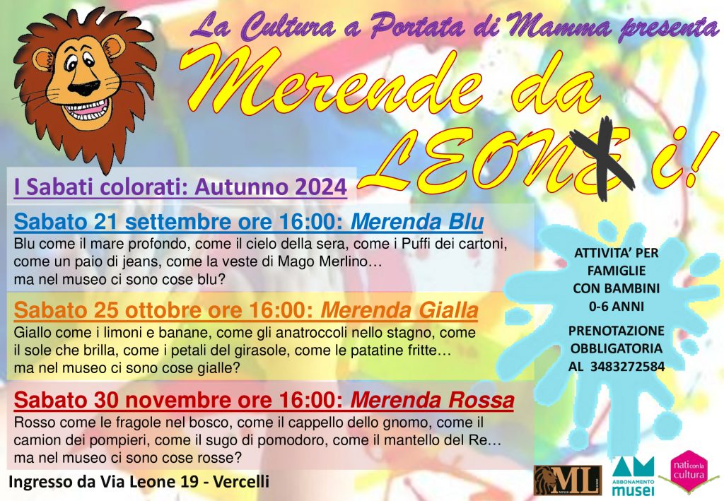 Un sabato al mese a partire dal 21 settembre tornano gli appuntamenti per le famiglie con le Merende da Leoni.