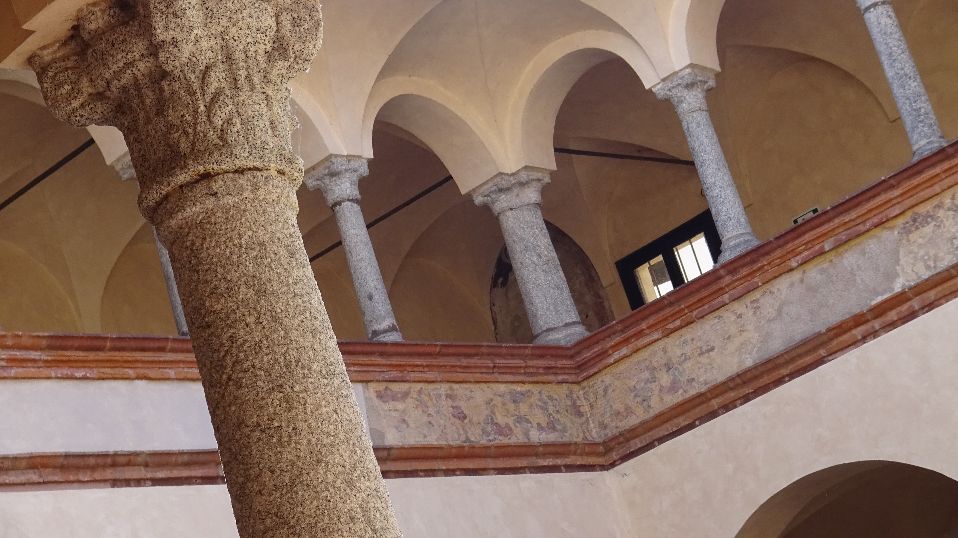 Oggi è l’ingresso del Museo Leone, il suo cortile accoglie i visitatori e stupisce i passanti di Via Verdi che, sbirciando dentro, credono di osservare il chiostro di un convento.