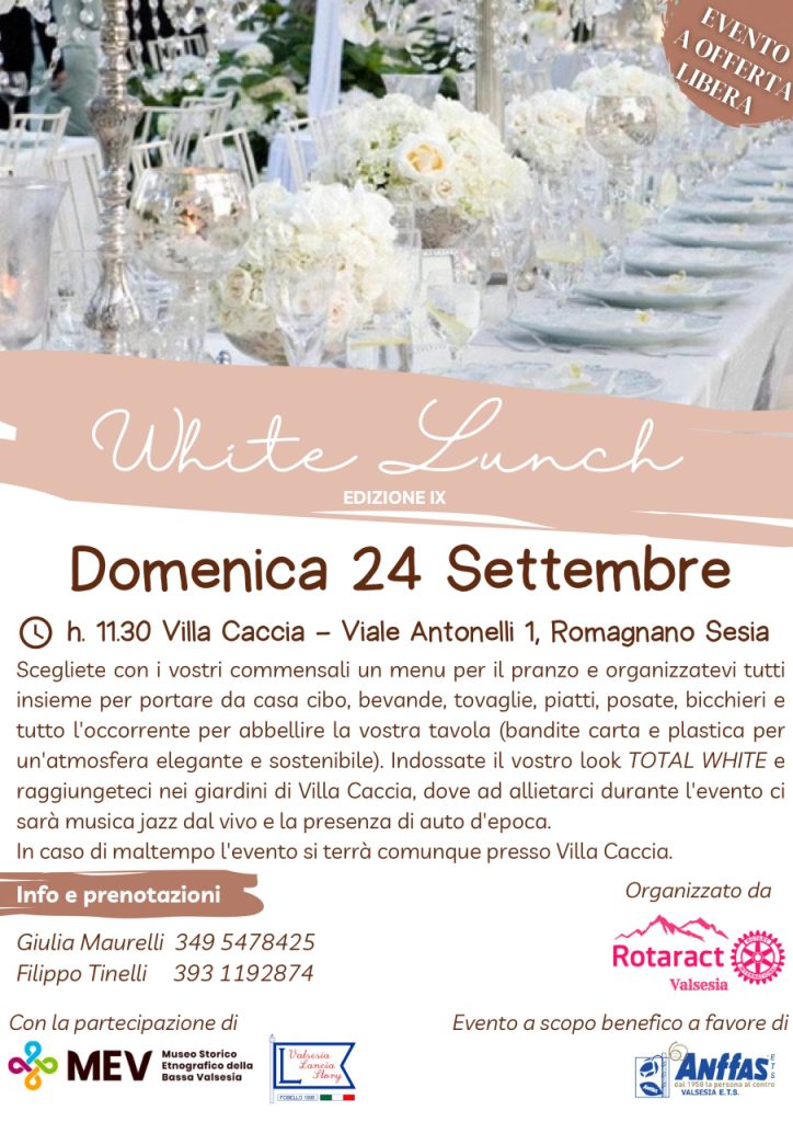 Domenica 24 settembre alle ore 11:30 a Villa Caccia si svolgerò la nona edizione del White Lunch!