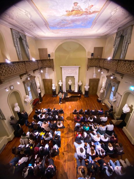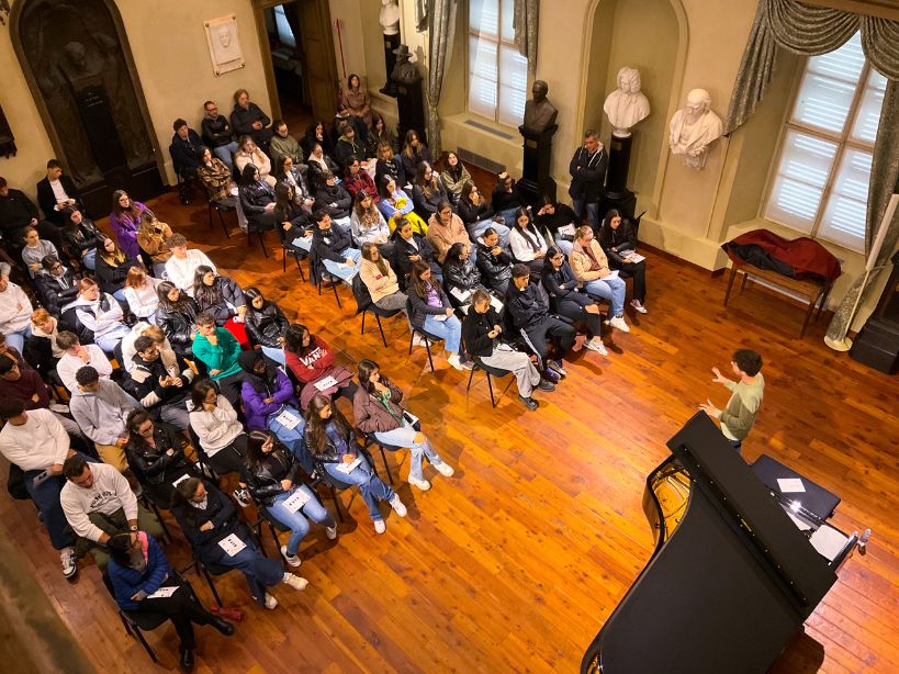 Il processo creativo dell’artista, l’improvvisazione nel jazz e nella musica classica, ma anche il valore dello studio e della cultura, i temi trattati da Simone Locarni in un dialogo reso vivace dalle numerose domande degli studenti.
