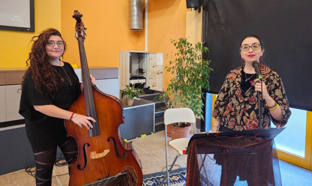 L’evento è stato allietato da un intermezzo musicale proposto Laura Zinno (voce) e Veronica Perego (contrabbasso) che hanno eseguito canzoni di De Andrè.