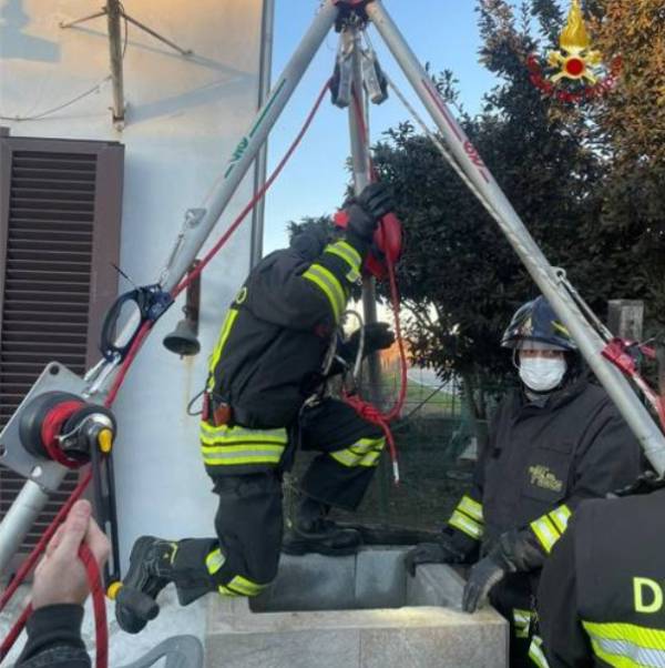 Una squadra dei Vigili del Fuoco di Vercelli è intervenuta oggi, martedì 11 gennaio alle ore 15.45 in località Rive Vercellese, per soccorrere un cane caduto in un pozzo di una abitazione privata.