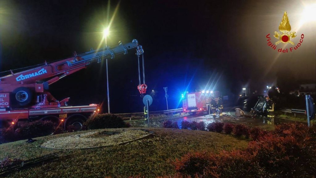 Un’auto è salita sulla rotonda andando ad impattare contro la statua posta al centro, dopo l’auto si è ribaltata pochi metri più avanti.