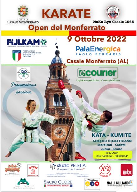 Domenica 9 ottobre al PalaEnergica Paolo Ferraris si terrà la prima edizione dell’Open del Monferrato di karate, novità assoluta per Casale Monferrato e che sarà aperta a tutti i tesserati Fijlkam (Federazione Italiana Judo Lotta Karate Arti Marziali) e a tutti gli enti di promozione sportiva riconosciuti dal Coni.