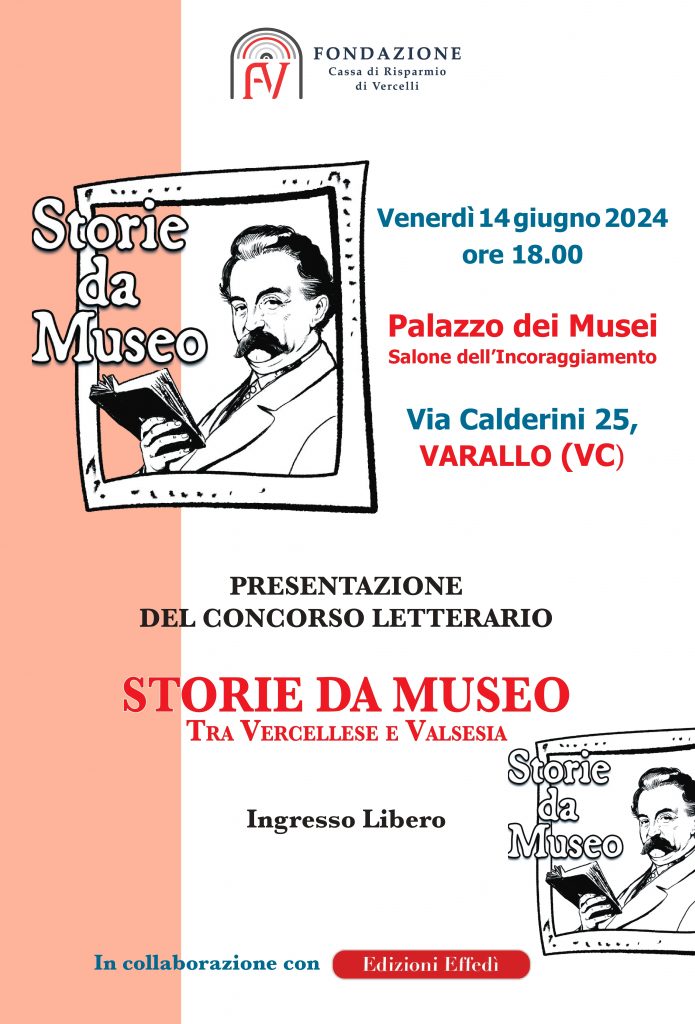 A Palazzo dei Musei a Varallo è in programma la presentazione cel Concorso Letterario “Storie da Museo”, promosso da Fondazione Cassa di Risparmio di Vercelli in collaborazione con Edizioni Effedi.
