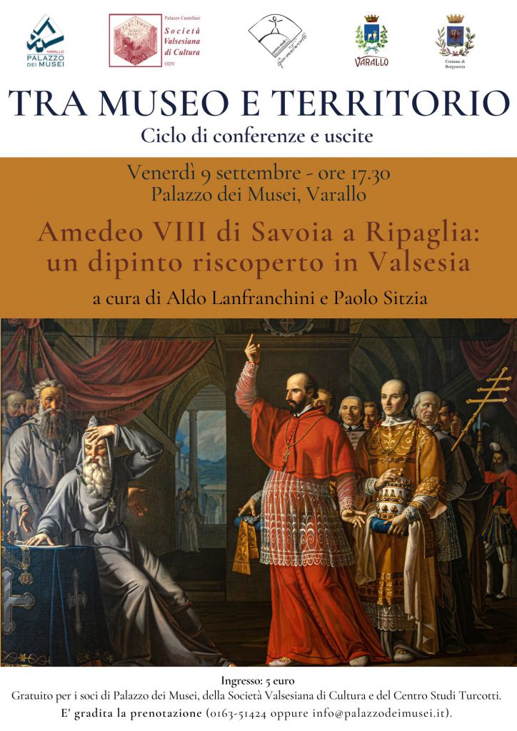 Relatori saranno Aldo Lanfranchini e Paolo Sitzia, che racconteranno le vicende della grande tela con Amedeo VIII di Savoia a Ripalta dipinta nel 1817 dal pittore Francesco Rayneri di Rossa e oggi conservata nelle collezioni della Galleria Sabauda di Torino.
