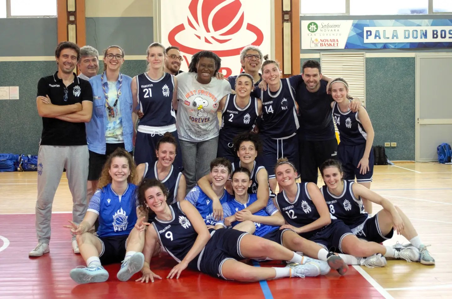 Andando a vincere in casa del Novara Basket per 41-59, la squadra vercellese conquista la salvezza in serie B con grande merito, al termine di una partita non certamente bella, ma molto sentita da entrambe le squadre, piuttosto tirata nella prima parte.