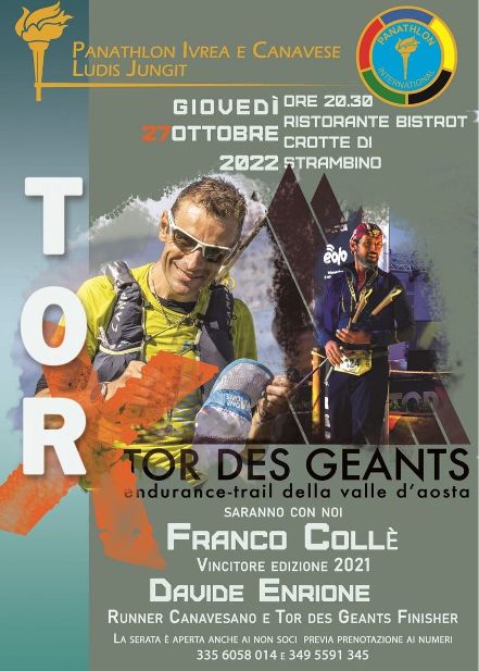 Allacia le scarpe e vivi la tua avventura, potrebbe essere questo il titolo della serata di giovedì 27 ottobre al Bistrot Crotte di Strambino(To) organizzato da Francesco Rao, presidente di Panathlon Ivrea.
