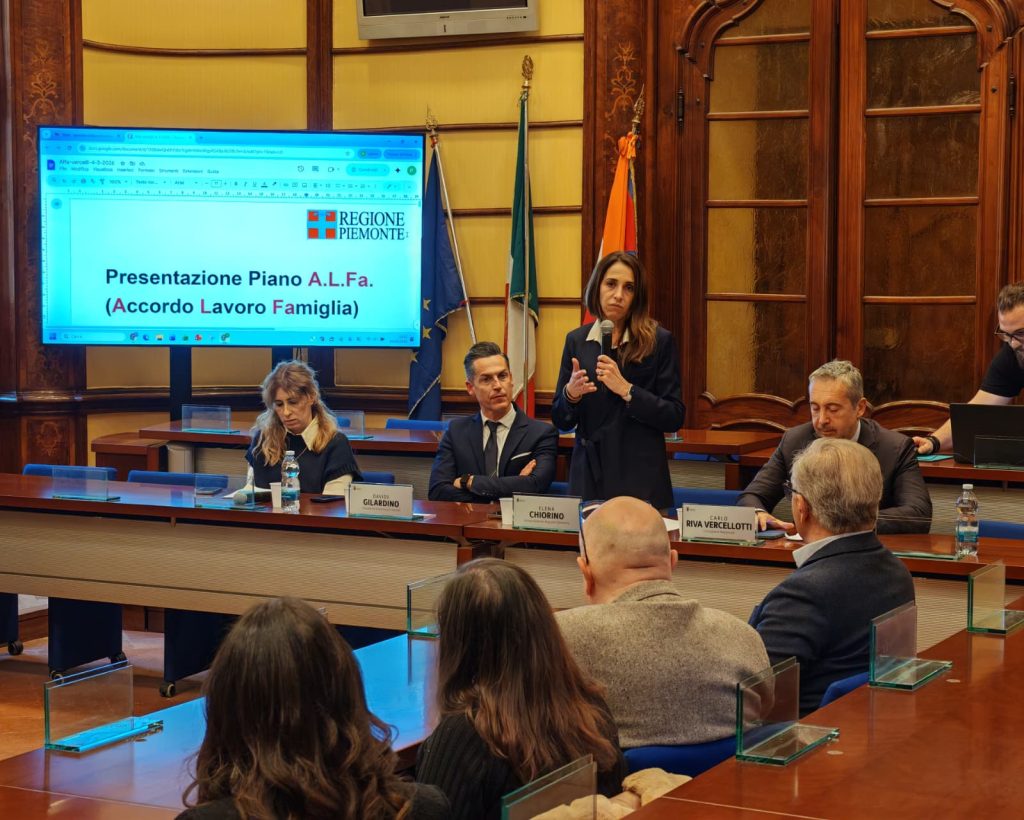 È dalla sede della Provincia che Elena Chiorino, vicepresidente e assessore al Lavoro della Regione Piemonte, accompagnata dal presidente della Provincia Davide Gilardino e dal consigliere regionale Carlo Riva Vercellotti, ha presentato il Piano A.L.Fa. – Accordo Lavoro Famiglia, una misura che traduce in azione concreta una scelta politica precisa: rafforzare l’occupazione femminile, sostenere le famiglie e accompagnare le imprese che investono sul capitale umano.