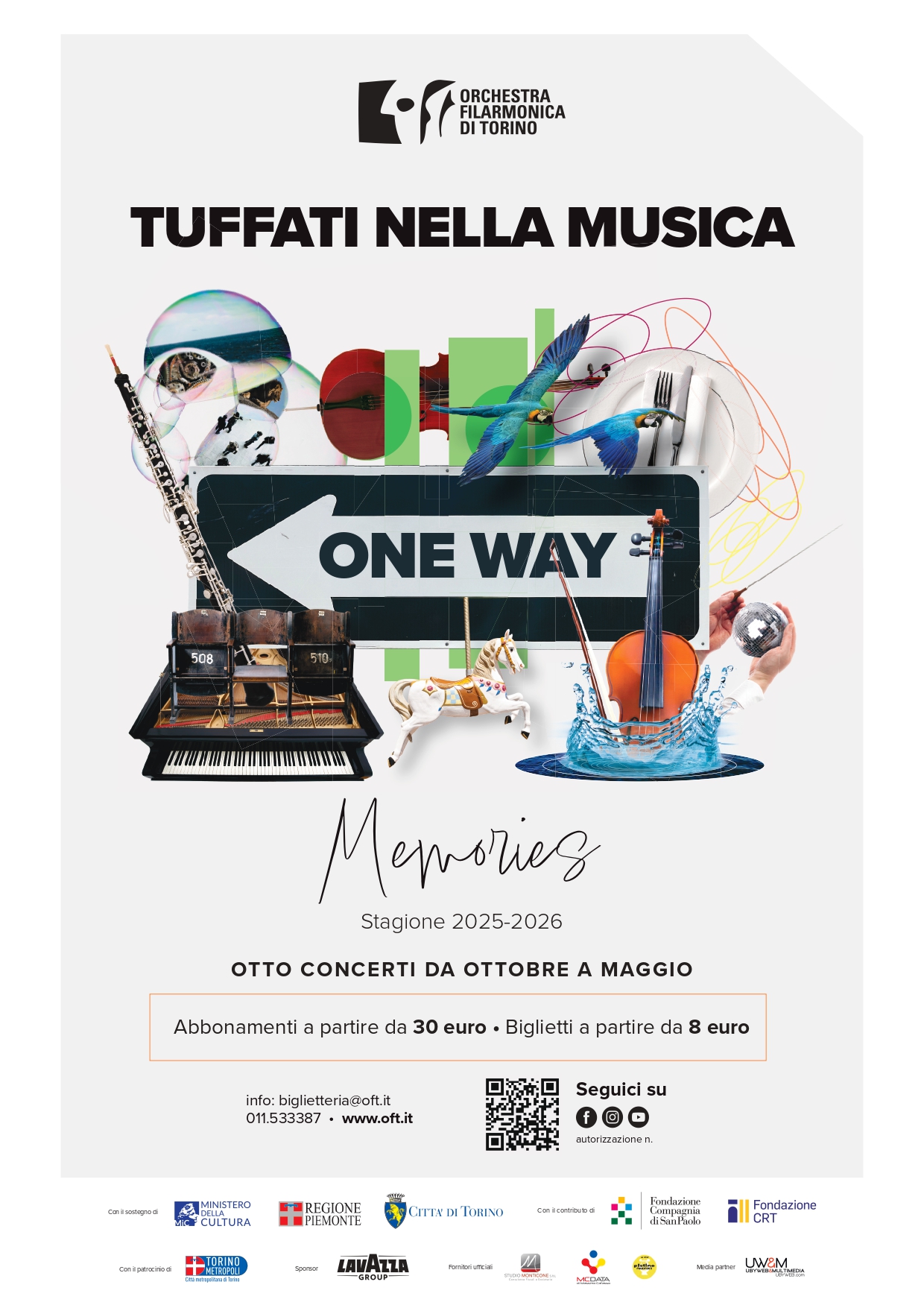 Prosegue il viaggio One Way dell’Orchestra Filarmonica di Torino, e lo fa con una nuova tappa densa di significato e visione. Dopo l’energia del cammino condiviso – One Way Together–, la Stagione 2025-2026 si intitola Memories: un’esplorazione sonora sul tema della memoria, che si fa atto creativo, radice collettiva e chiave di accesso al futuro.