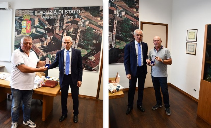 Nella giornata di ieri, mercoledì 31 agosto, il Questore di Vercelli dr. Maurizio Di Domenico e tutti i Funzionari hanno salutato l’Ispettore Superiore Vincenzo Cotugno e il Sovrintendente Capo Coordinatore Mauro Ferrara, i quali, a partire da oggi, giovedì 1 settembre, sono collocati in quiescenza, dopo quarant’anni di servizio.