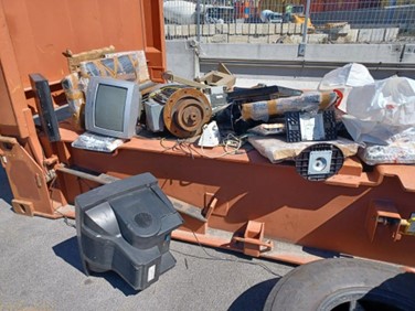 Le verifiche approfondite della merce, condotte dai funzionari doganali, hanno permesso di riscontrare la presenza di oltre 233 tonnellate rifiuti di diversa tipologia: pneumatici fuori uso, rifiuti di apparecchiature elettriche ed elettroniche (R.A.E.E.), batterie usate, rottami di parti di automezzi e altra merce da classificarsi come rifiuto.