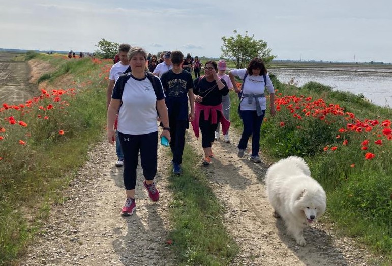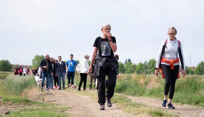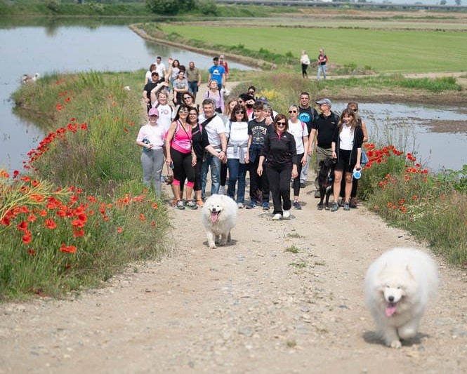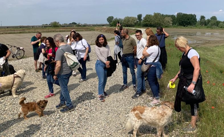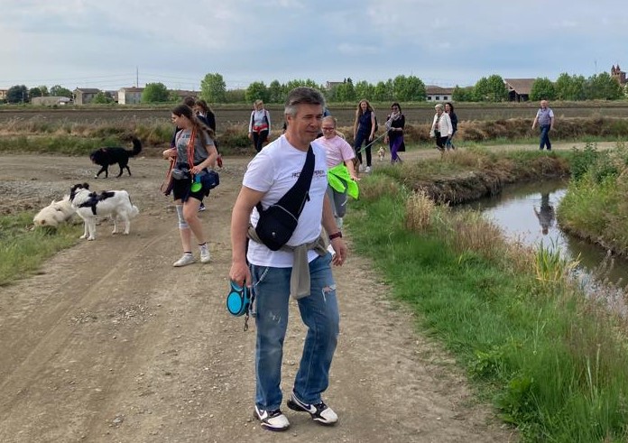 Così, è nata l’idea di una camminata (alla portata di tutti, circa sette chilometri) insieme ai propri beniamini a quattro zampe, lungo un percorso che, muovendo dal centro polifunzionale di Prarolo, si è snodato tra le risaie, per fare poi ritorno in paese.