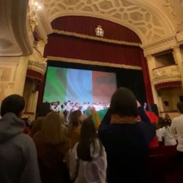 L’evento è iniziato con il canto dell’inno nazionale d’Italia e con quello europeo con tutti in piedi a celebrare la manifestazione e gli inni.