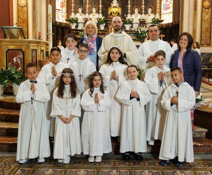 La chiesa già di per se molto bella era stata finemente addobbata ad arte, questo 7 aprile non era una domenica o una festa qualunque 10 bambini assieme ai loro genitori hanno accettato l’invito di Gesù di riceverlo nel loro piccolo cuore.