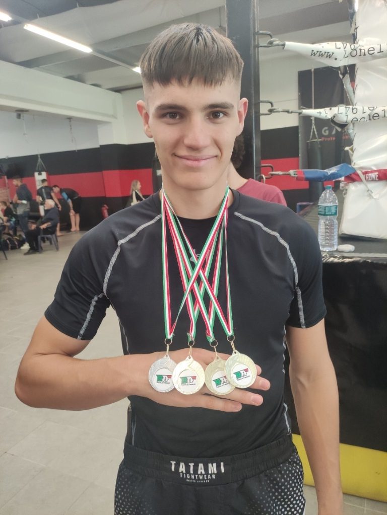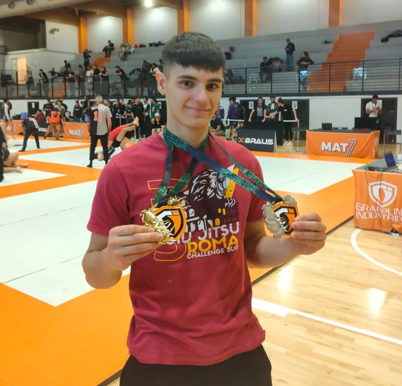Pietro Ferrero il diciassettenne vercellese cintura blu juvenile compete in quattro categorie adulti, con kimono cinture blu dove conquista l’oro, stessa medaglia nelle cinture viola con kimono, nelle categorie nogi (senza kimono) conquista una medaglia d’oro nella classe B (cinture viola) e un argento nella classe A (cinture marroni e nere).